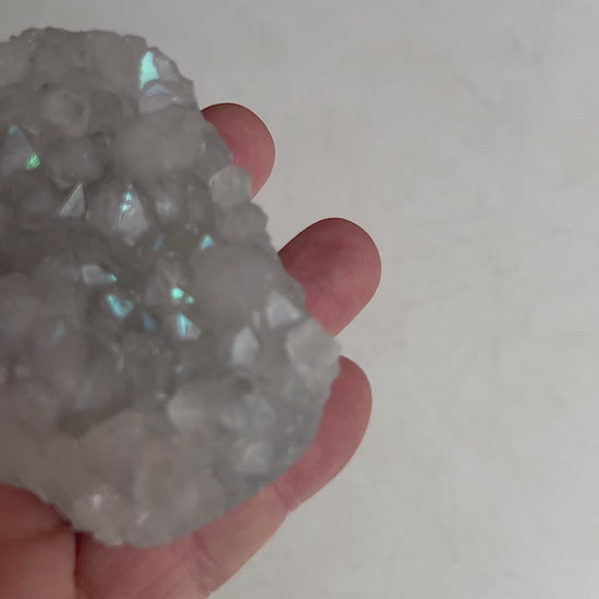 Anandalite, also known as Rainbow Quartz or Aurora Quartz, is a rare and naturally iridescent variety of quartz found in India. This stunning crystal is admired for its natural rainbow sheen that forms through unique internal structures within the quartz — no treatments or coatings involved.