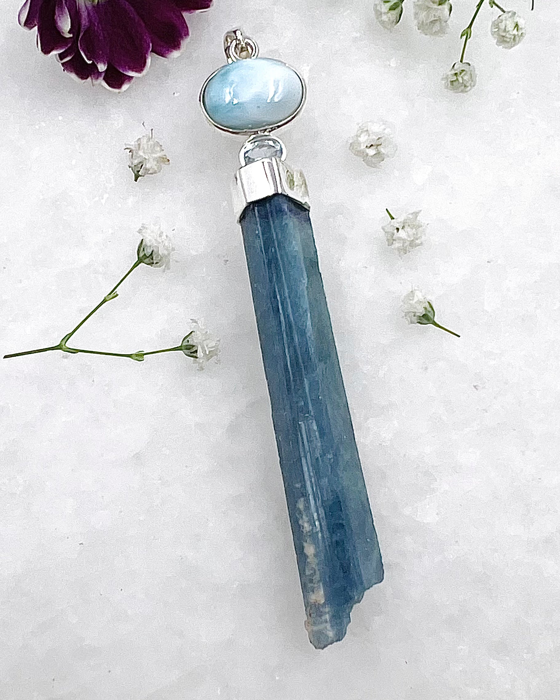Natural South Indian Dark Blue Aquamarine Crystal with Larimar and Facetted Aquamrine Accent as a Combi
